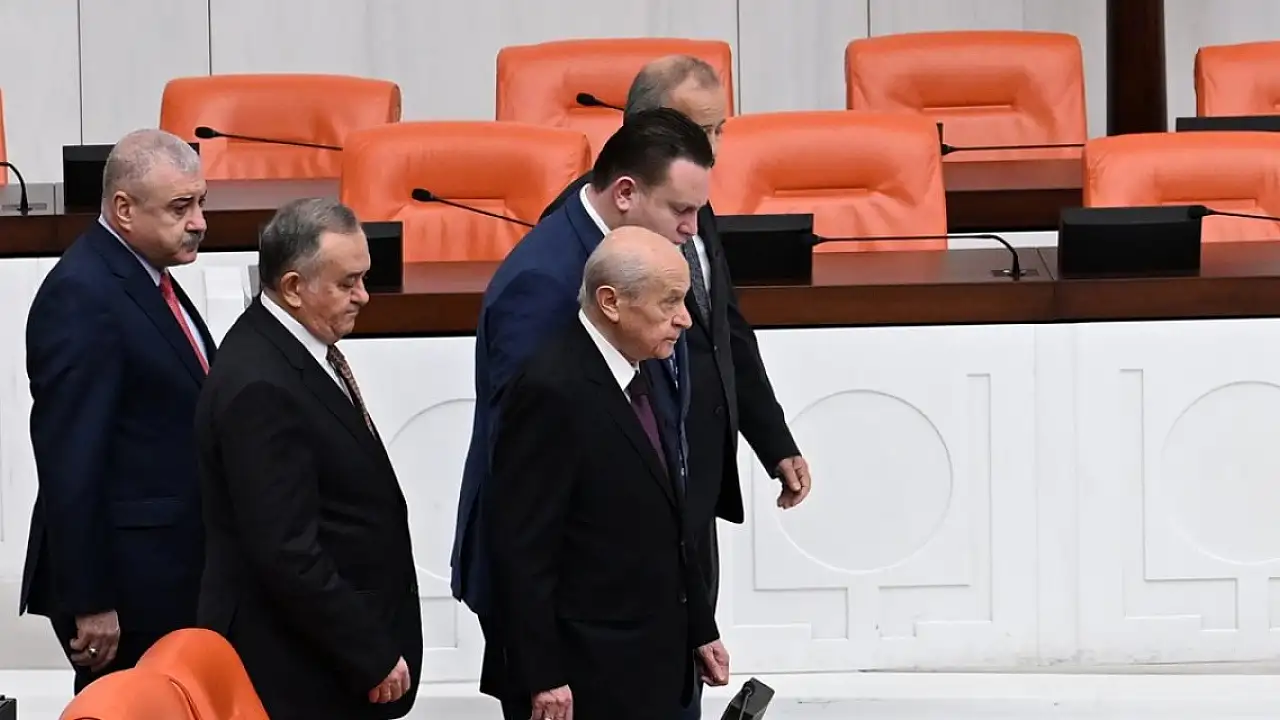 MHP lideri Bahçeli, bütçe görüşmelerinde son konuşmaların yapıldığı TBMM Genel Kurulu'nu, sıra DEM Parti'ye gelince terk etti. Gazetecilerin, "Daha önce bütçe sonuna kadar kalırdınız. Bugün DEM milletvekilleri konuşurken çıktınız. CHP'yi takip edecek misiniz" sorusuna cevap veren Bahçeli, "Cumhuriyet Halk Partisi'ni takip etmeyeceğim. Arkadaşlarım da takip etmeyecek. Anayasa Mahkemesi'nin yapması gerekeni yapıyorum" dedi.