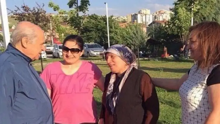 Takım elbiseyle görmeye alıştığımız MHP Lideri, eşofmanlarıyla vatandaşlarla sohbet ederken görüntülendi.