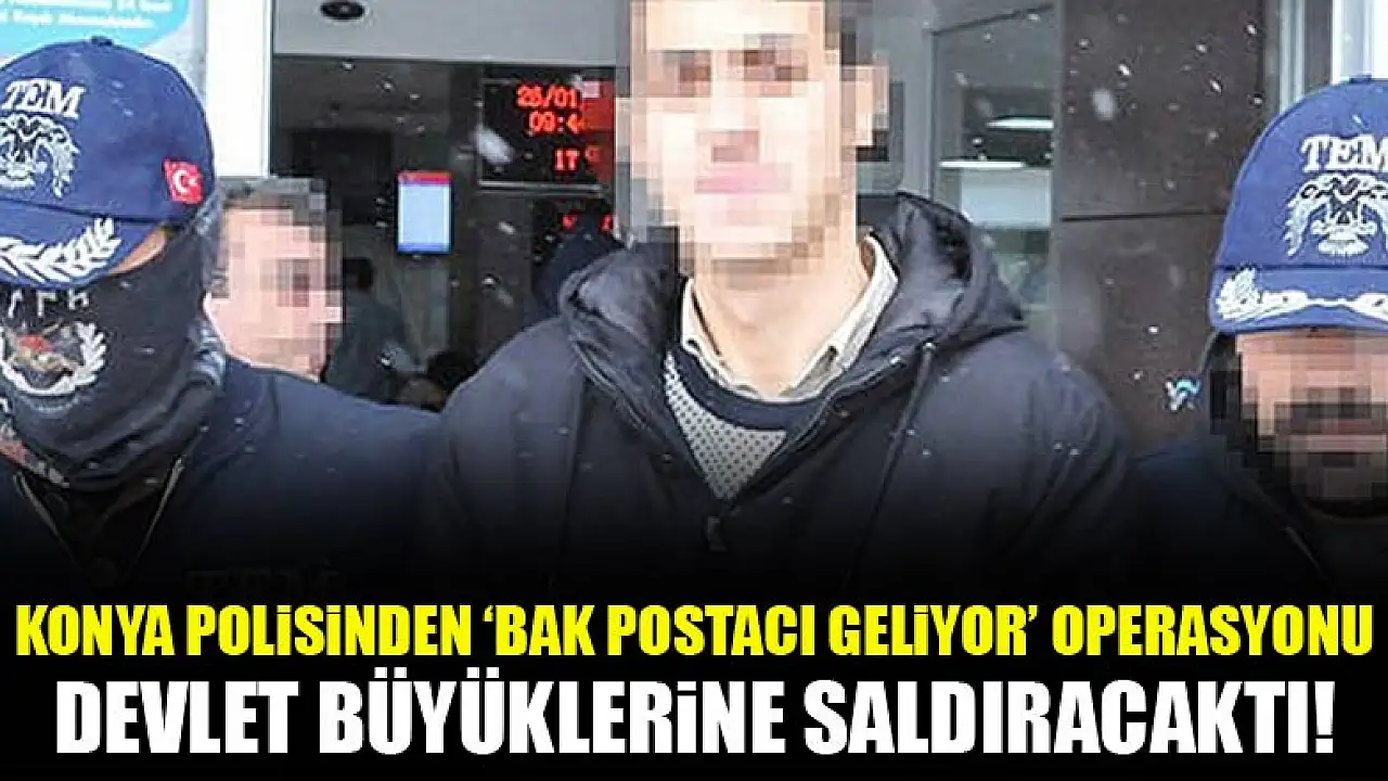 2 aylık takibi gerçekleştiren Konya polisi, postacı kılığında devlet büyüklerine suikast düzenlemeyi planladığı ifade edilen Ömer A.'nın yakalandığı operasyona 'Bak Postacı Geliyor' ismini verdi.