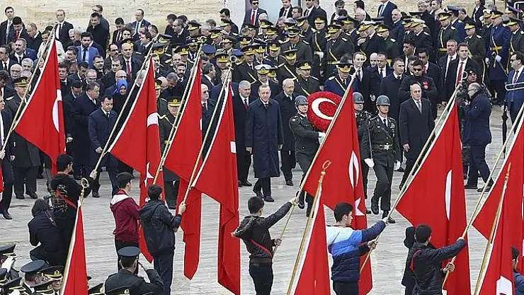 Cumhurbaşkanı Erdoğan başkanlığında, TBMM Başkanı İsmail Kahraman, Başbakan Binali Yıldırım, Genelkurmay Başkanı Orgeneral Hulusi Akar, CHP Genel Başkanı Kemal Kılıçdaroğlu, MHP Genel Başkanı Devlet Bahçeli, yüksek yargı organlarının başkanları, Bakanlar Kurulu üyeleri, kuvvet komutanlarının da bulunduğu heyet, Aslanlı Yol'dan geçerek Atatürk'ün mozolesine geldi.