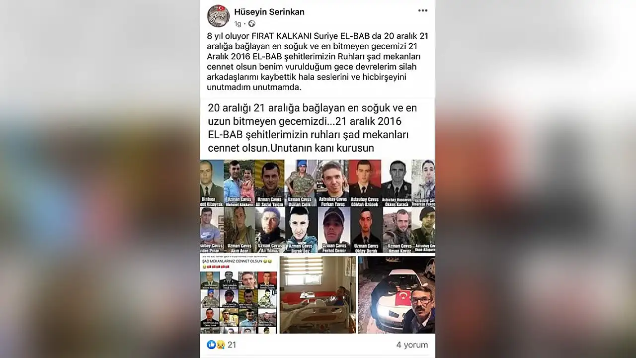 Dün akşam saatlerinde çıkan çatışmada şehit düşen Mehmet Serinkan'ın 2016 yılında yaralanan ağabeyi Hüseyin Serinkan'ın bir gün önce sosyal medya hesabı üzerinden yaralandığı çatışmada şehit düşen arkadaşlarını yad ettiği görüldü.