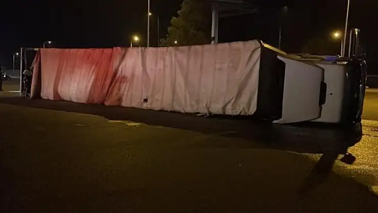 SİVAS'ta, dorsesinde cam yüklü TIR'ın kavşaktan dönerken devrilmesiyle Kayseri yolu bir süre ulaşıma kapatıldı. Belediye ekiplerinin çalışmasıyla yol yeniden ulaşıma açıldı.
