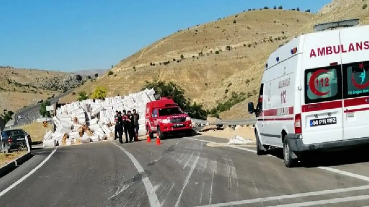 MALATYA'nın Akçadağ ilçesinde, saman yüklü kamyon devrildi, sürücü Murat Doğan (33), hayatını kaybetti.