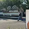 Devrilen tankerin altında kalan sürücü hayatını kaybetti