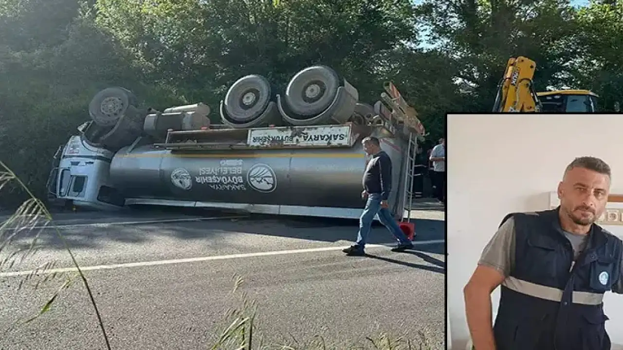 Sakarya'nın Karasu ilçesinde Büyükşehir Belediyesi'ne ait su tankerinin devrildiği kazada sürücü Ömür Erol (47) hayatını kaybetti.