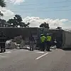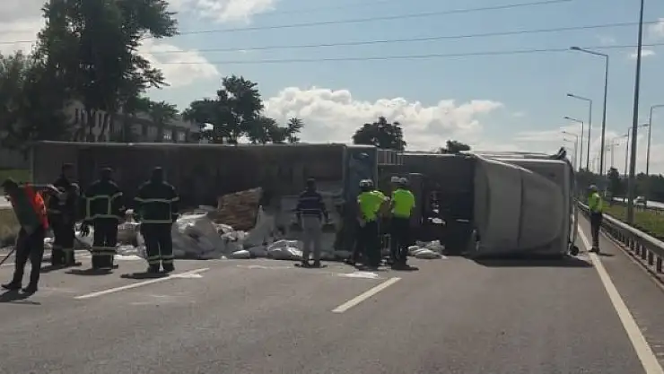 Eskişehir'de bir tırın devrilmesiyle meydana gelen trafik kazasında sürücü ve babası yaralandı.