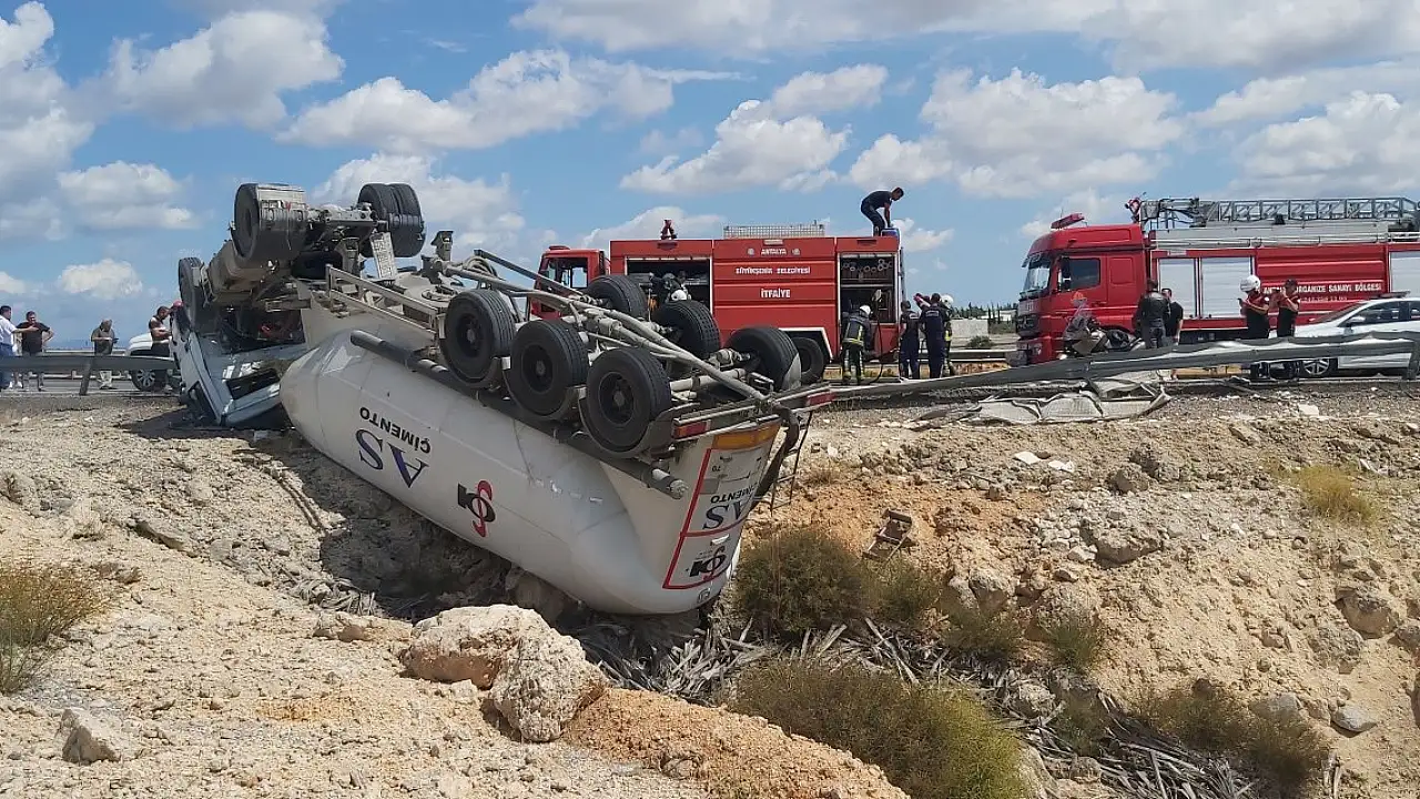 ANTALYA'nın Döşemealtı ilçesinde devrilen çimento yüklü TIR'ın şoförü Sami Metin (47), ağır yaralandı. İtfaiye ekipleri tarafından uzun uğraşlar sonucu çıkarılan Metin, hastaneye kaldırıldı.