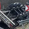 Ömer Doğan idaresindeki tır, Mezitler bölgesinde seyir halindeyken kontrolden çıkıp bariyerleri aşarak devrildi.