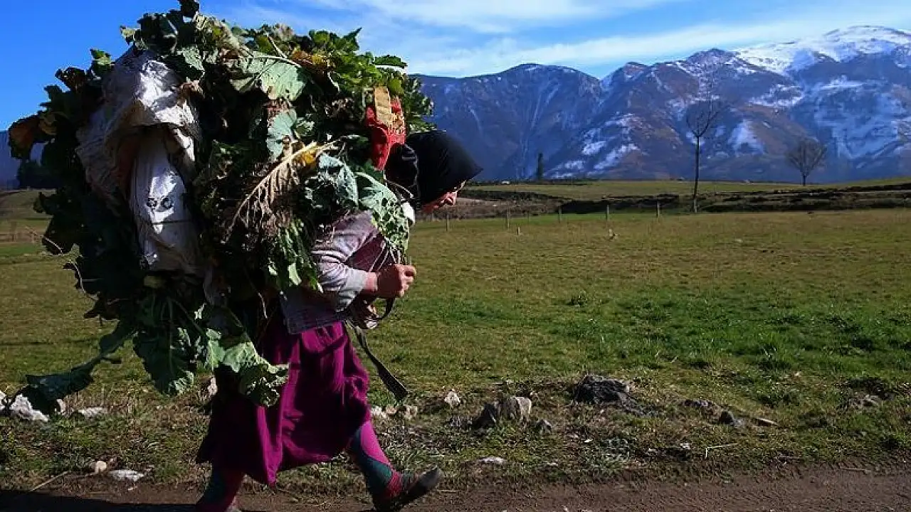 Arazide her dönem farklı işlerle uğraşan kadınlar, çayır kesiyor, lahana, patates dikiyor, mısır, fasulye ekiyor ve sırtında gübre ve onlarca yük taşıyor.