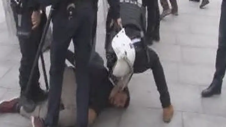 Duruşmaya girmek isteyen bir grup ile polis arasında arbede yaşandı. Polis göstericilere boyalı mermi atarak müdahale etti.