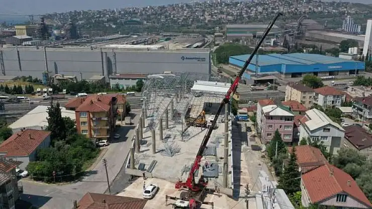 Dilovası katlı otoparkta çatı montajı yapılıyor