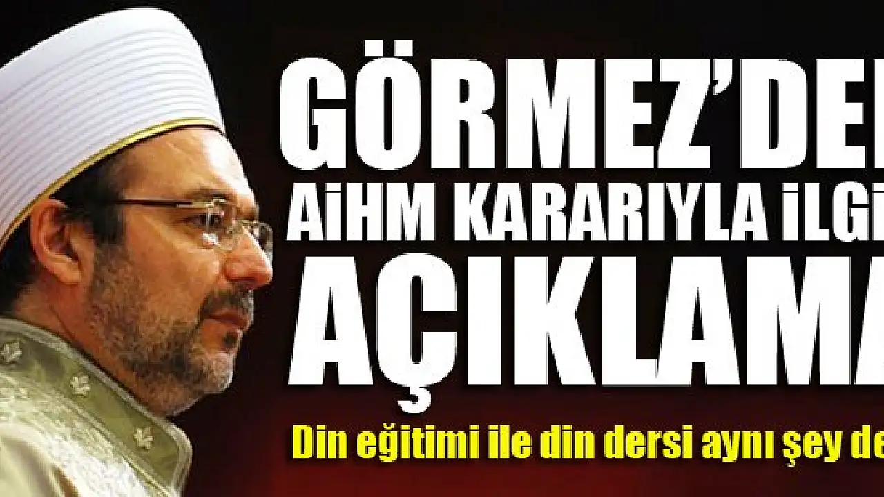 Diyanet İşleri Başkanı Mehmet Görmez, AİHM'in "zorunlu din dersi" kararına ilişkin, "Zorunlu din eğitimi ile zorunlu din kültürü ve ahlak bilgisi derslerini birbirinden ayırmak gerekiyor. Eğer bu birbirinden iyi ayırt edildiği zaman, Avrupa ülkelerinde de çok örnekleri olduğu için bu konuda herhangi bir sorun çıkacağını zannetmiyorum" dedi.