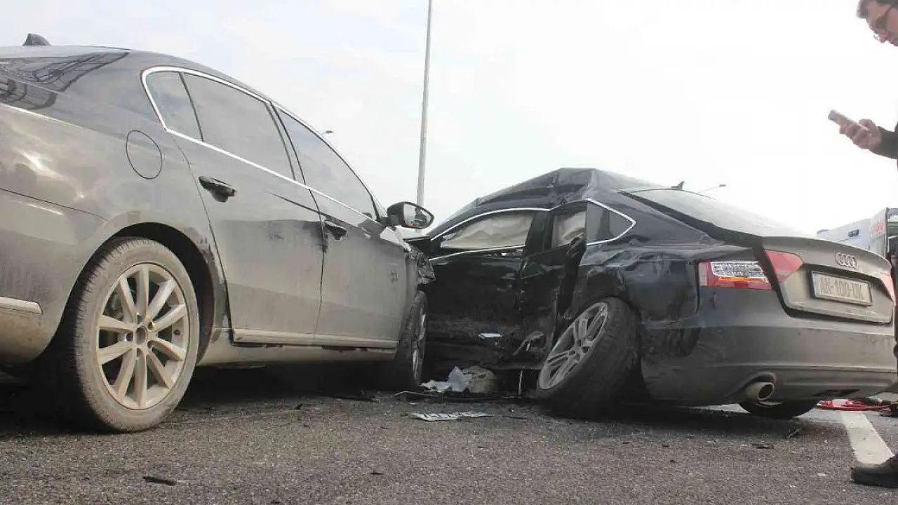 TEM Otoyolu Düzce geçişinde dinlenme tesisinden çıkan otomobil, önce tıra çarptı, ardından başka bir otomobille çarpıştı.