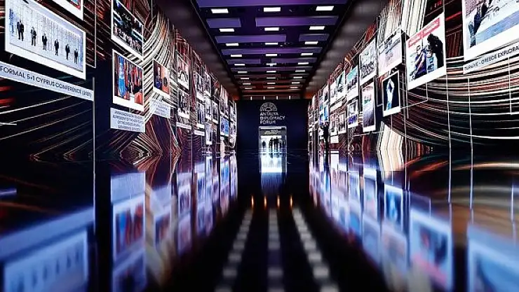 Antalya Diplomasi Forumu'nun (ADF) gerçekleştirildiği kongre merkezinde, 397 görsel eserin sergilendiği 'Diplomasi Tüneli' oluşturuldu