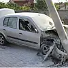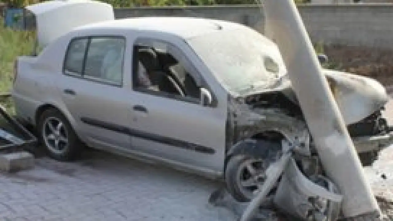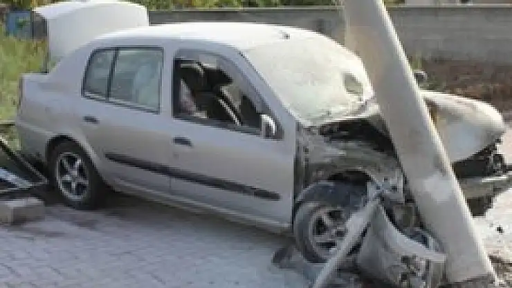 Konya’da sürücünün direksiyon hakimiyetini kaybetmesi sonucu direğe çarpan otomobilde yangın çıktı.