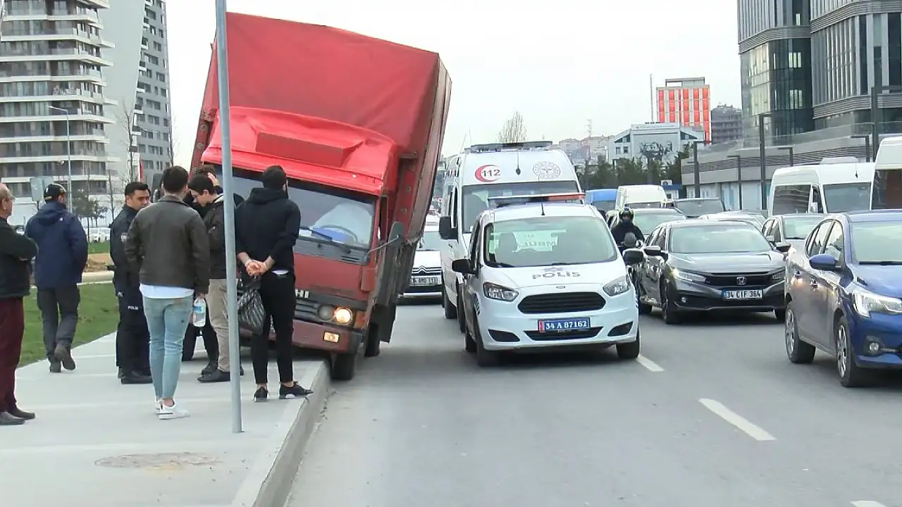 KAĞITHANE'de, seyir halindeyken şoförü fenalaşan kamyonet, kaldırıma çıkarak durdu.