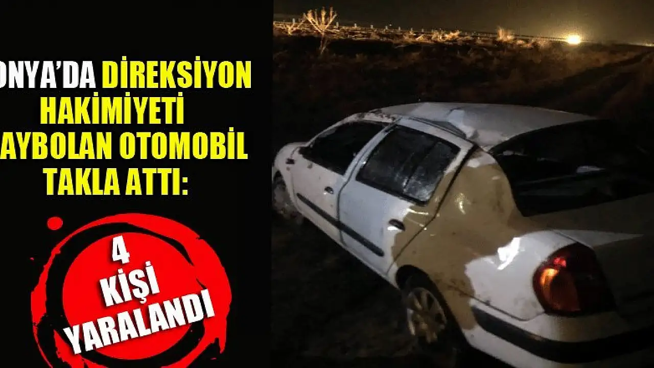 Konya'nın Kulu ilçesinde direksiyon hakimiyeti kaybolan otomobil takla attı. Kazada 4 kişi yaralandı.