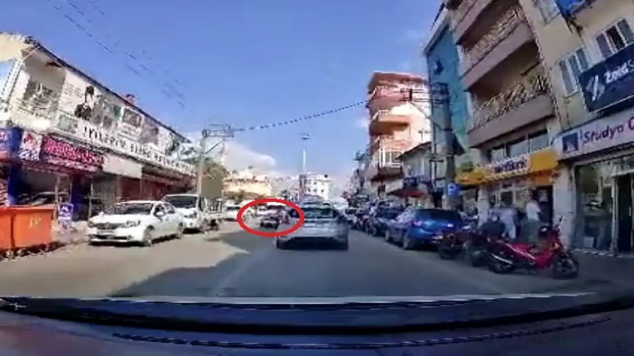 Olay, Yenişehir ilçesinde meydana geldi. Edinilen bilgiye göre, ismi öğrenilemeyen motosiklet sürücüsü seyir halindeyken direksiyon hakimiyetini kaybederek kaza yaptı. Kaza sonrası yere düşen sürücü hafif yaralanırken yardımına çevredekiler koştu. Sürücünün kendisini iyi hissetmesinin ardından tekrar motosikletine binerek devam etti. Kaza anı ise trafikteki başka bir aracın kamerasına yansıdı.