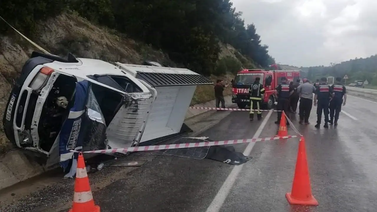 Denizli'nin Buldan ilçesinde diş tedavisinden dönen çiftin içerisinde bulunduğu kamyonetin, aşırı yağış nedeniyle takla atması sonucu meydana gelen kazada 1 kişi öldü, 1 kişi yaralandı.