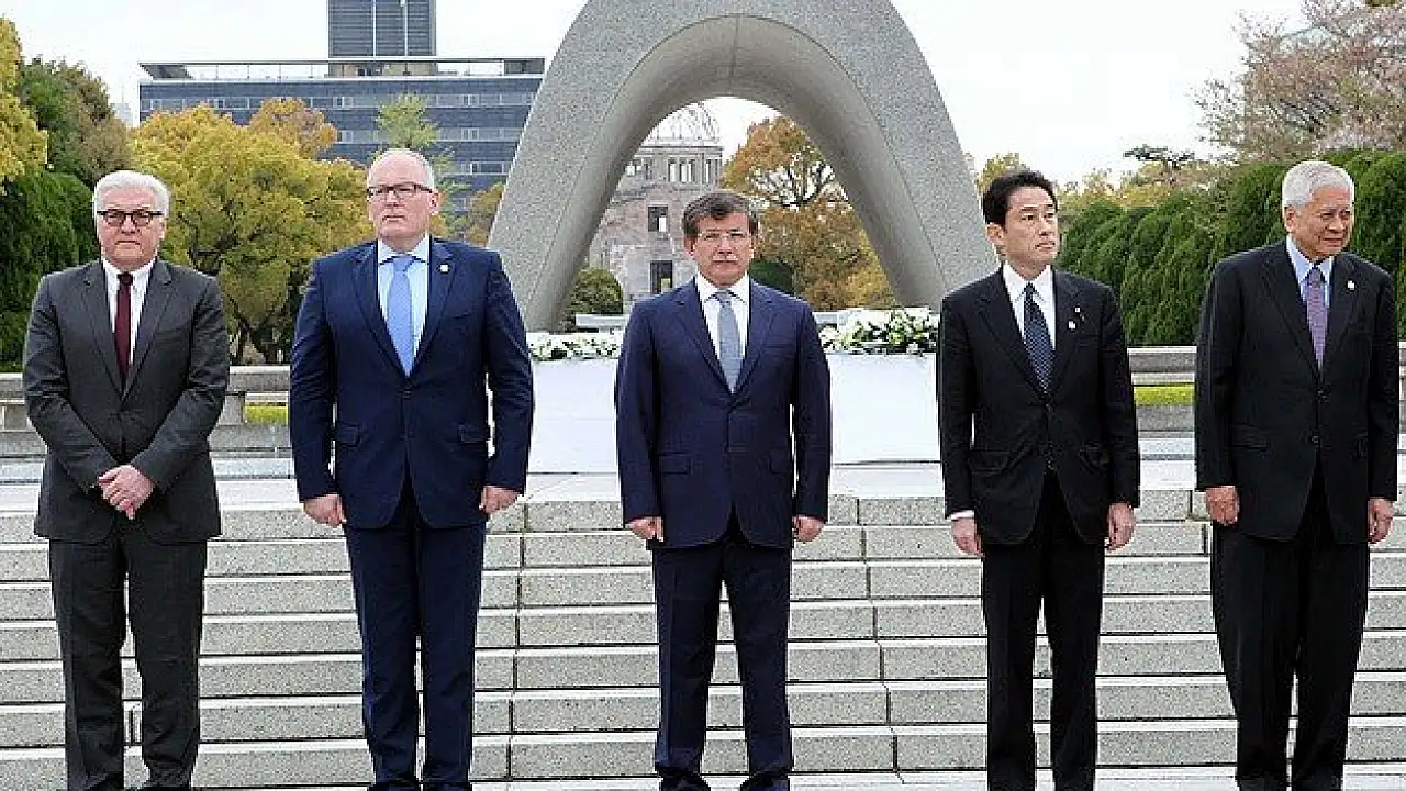 Dışişleri Bakanı Ahmet Davutoğlu, Japonya'nın Hiroşima kentinde Nükleer Yayılmanın Önlenmesi ve Silahsızlanma Girişimi (NPDI) sekizinci bakanlar toplantısı öncesi, atom bombası kurbanları anıtını ziyaret etti.