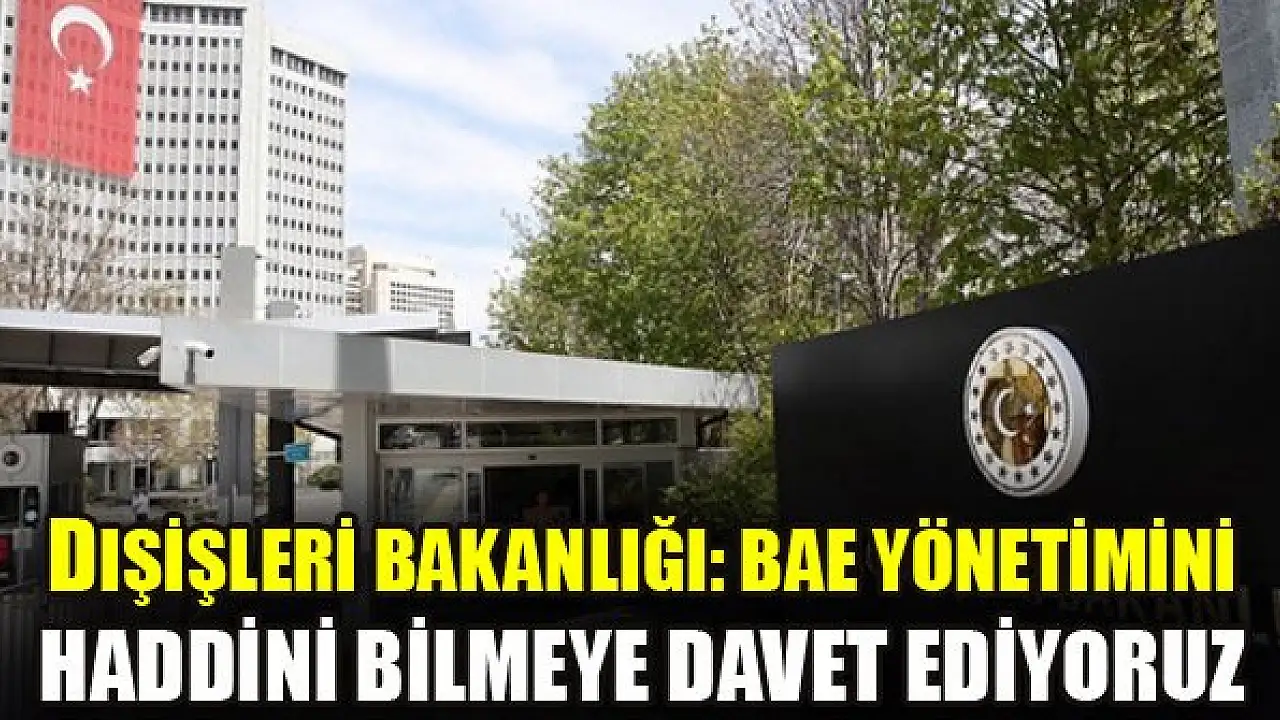 Dışişleri Bakanlığından yapılan açıklamada, 'Birleşik Arap Emirlikleri yönetimini ülkemize karşı düşmanca tavır takınmaktan vazgeçmeye ve haddini bilmeye davet ediyoruz.' denildi.