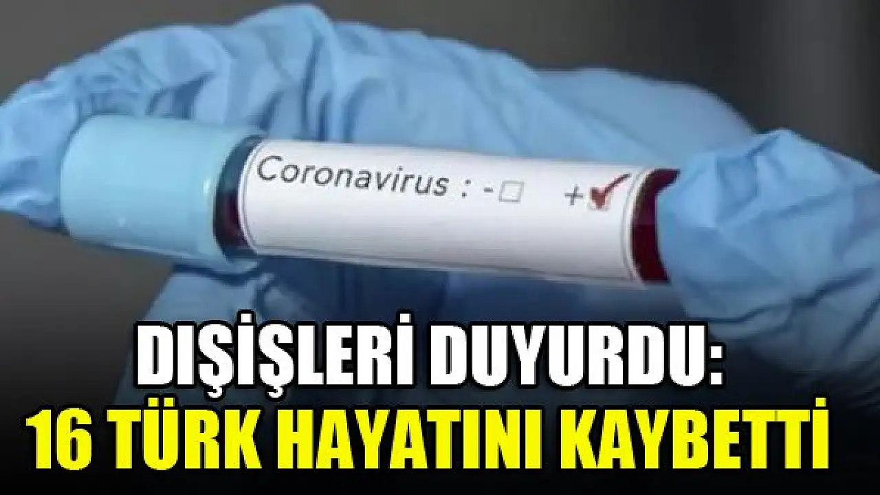 Dışişleri Bakanlığı, son 2 günde yurt dışında 16 Türk vatandaşın Corona Virüs (Covid-19) salgını nedeniyle hayatını kaybettiğini açıkladı.