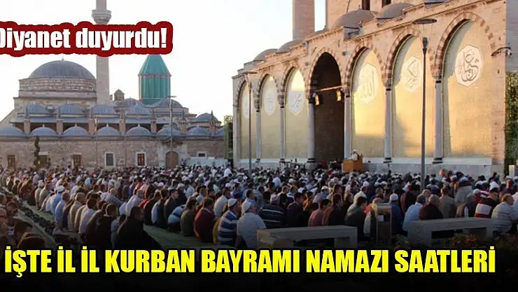 2019 yılı Kurban Bayramı namazı saatleri belli oldu. Müslümanlar Konya'da 06.37,Ankara'da 06.33, İstanbul'da 06.47, İzmir'de 06.58, Çanakkale'de 06.59 ve Iğdır'da 05.48'de bayram namazını kılacak.