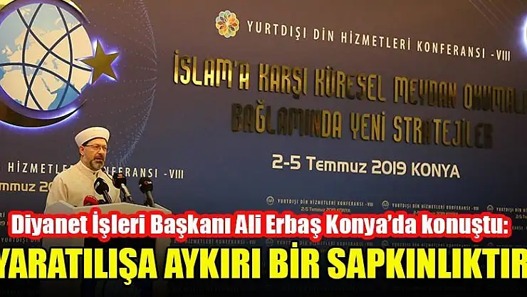 - Diyanet İşleri Başkanı Ali Erbaş Konya'da konuştu: 'Yaratılışa aykırı bir sapkınlıktır'