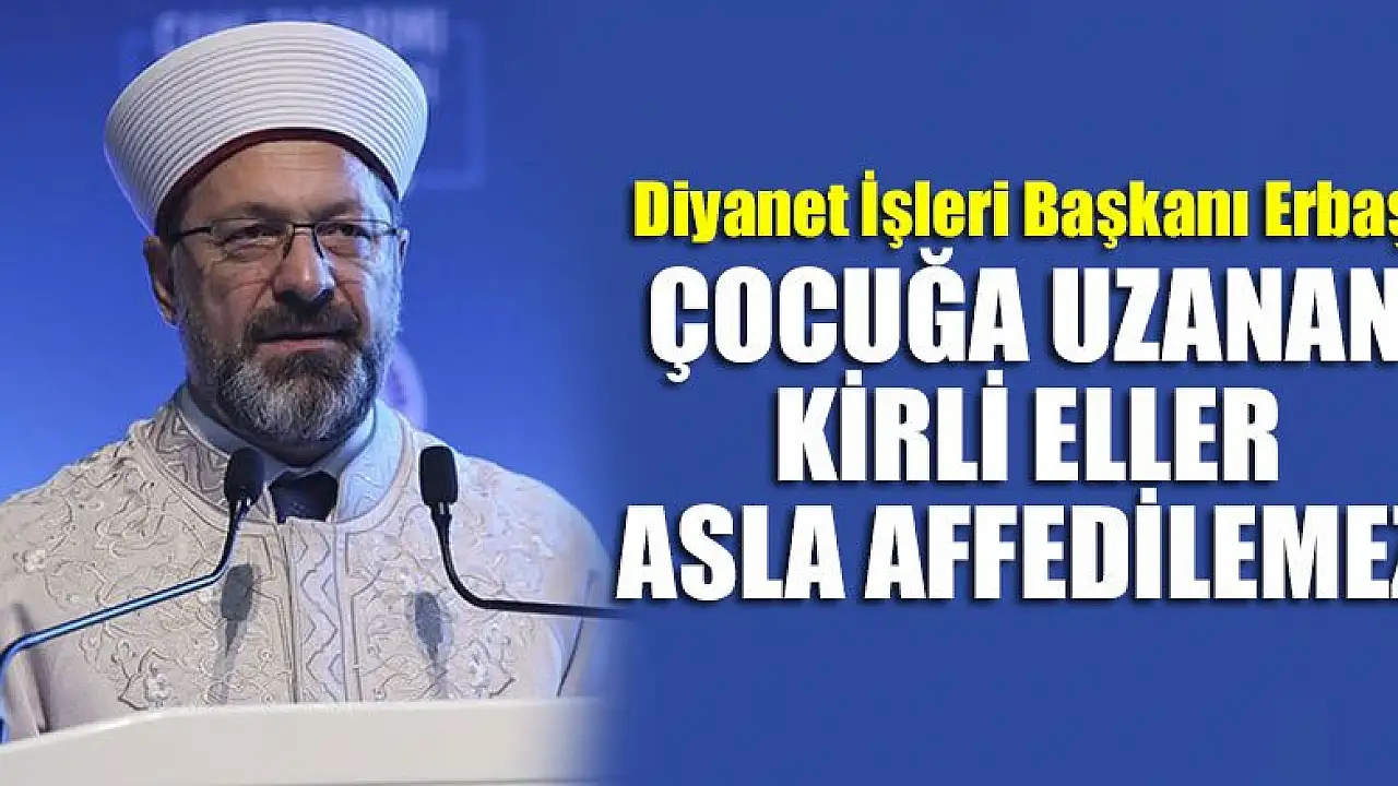 Diyanet İşleri Başkanı Erbaş, 'Çocuğun dokunulmazlığı, dini, ahlaki ve hukuki anlamda kırmızı çizgimizdir. Bu çizgiyi aşmaya cüret ederek, çocuğa uzanan kirli eller asla affedilemez.' değerlendirmesinde bulundu.