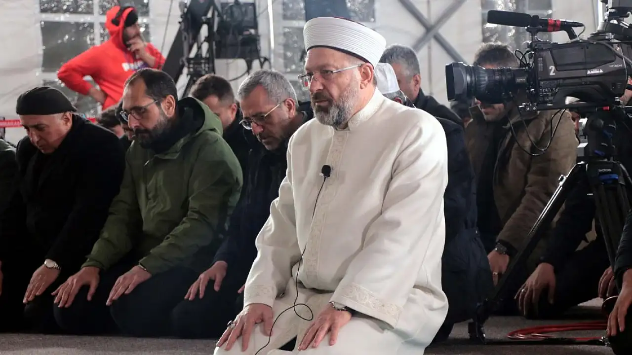 DİYANET İşleri Başkanı Ali Erbaş, Kahramanmaraş'ta kurulan çadır mescitte, "Berat Kandili Programı'na katılıp, cemaat ile birlikte depremde hayatını kaybeden vatandaşlar için dua etti.