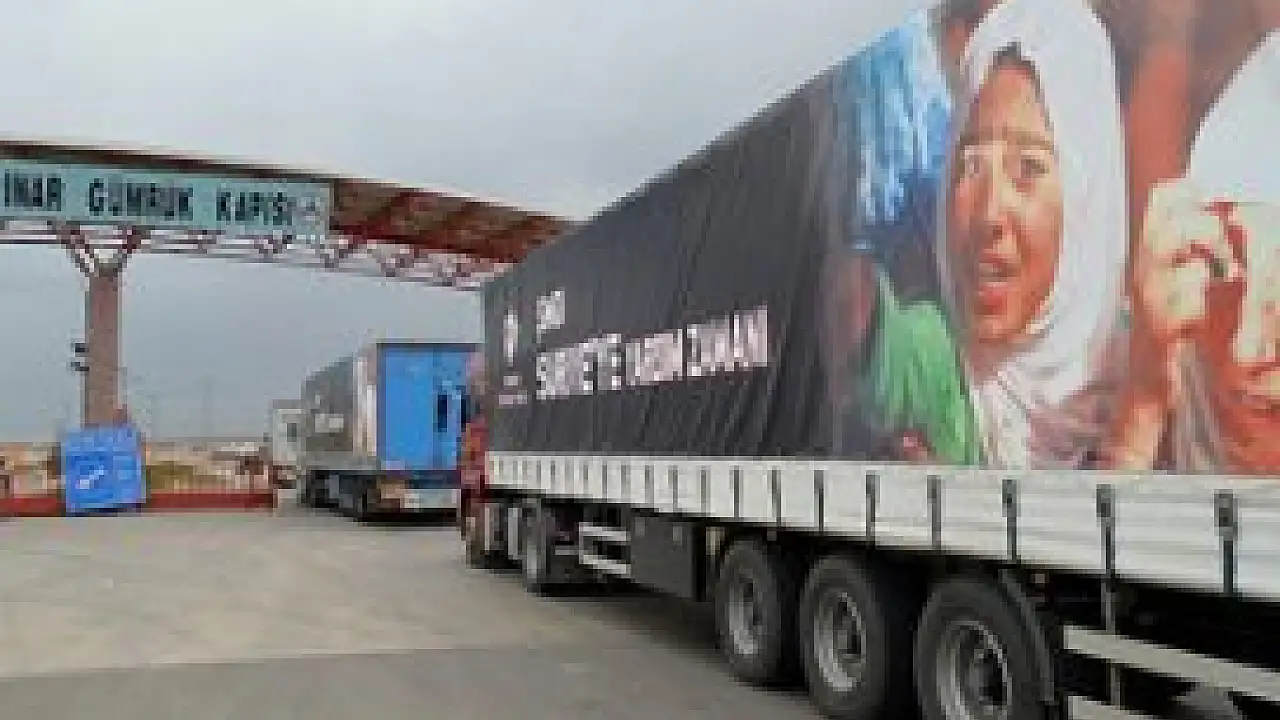 Isparta'dan yola çıkan yardım tırları, Kilis'e geldi. Gıda malzemeleri taşıyan tırlar, daha sonra Öncüpınar Sınır Kapısı'ndan geçerek Suriye'ye hareket etti.