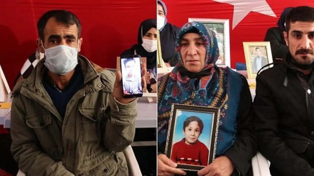 Siirt'ten gelen baba Ziver Çelik 3 ay önce 17 yaşındayken kandırılarak dağa kaçırılan oğlu Ferhat, Hakkari'nin Yüksekova ilçesinden oğlu Kerem Çakan ile gelen anne Nadire Çakan da 8 yıl önce 13 yaşındayken dağa kaçırılan evladı Muhammed için eyleme dahil oldu.