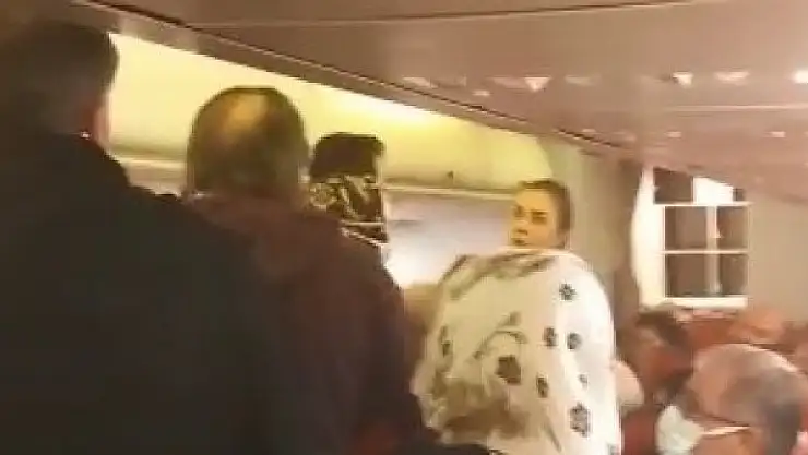 "Saat 20.35'te uçak kalkması gerekirken, bir bahane gösterip uçakta birinin rahatsızlandığını bizlere söylediler ve bir süre sonra o şahsı indirdiler. Aradan bir saat geçtikten sonra uçağa gelen güvenlik güçleri ihbar olduğunu ve el bagajlarını indirmemizi söylediler. Bagajları tek tek kontrol ettikleri sırada uçakta bulunanlar duruma tepki gösterdiler. Sonra bir yolcu uçağa bindi burada bulunan bütün yolcular o şahsa tepki gösterdiler. Şu anda görüyorsunuz polisler geldi ve yolcularla tartışıyorlar."