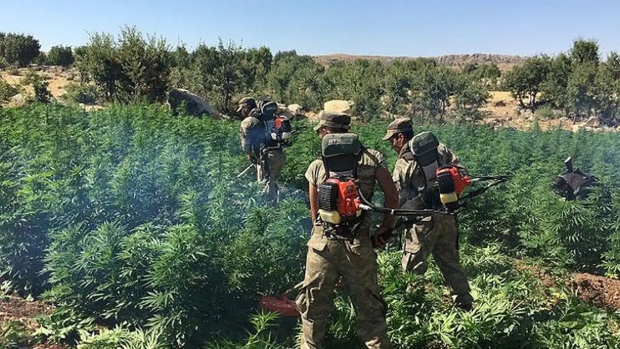 Diyarbakır'ın Hazro ilçesinde gerçekleştirilen operasyonda 613 bin 405 kök Hint keneviri ile 35 kilogram esrar ele geçirildi.