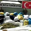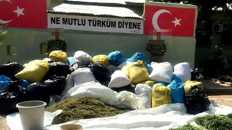 Evde yapılan aramada, 30 kilogram esrarın yanı sıra 3 av tüfeği, tüfeklere ait dürbün, 2 şarjör, terör örgütü PKK'nın sözde flaması, üzerinde PKK yazılı duvar saati ile PKK'nın Suriye uzantısı olan PYD'nin askeri kanadının kadın kolu YPJ'yi simgeleyen bezler ele geçirildi.