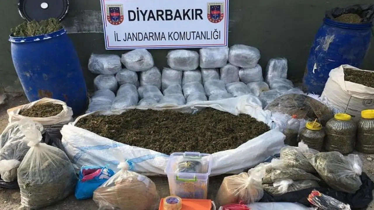 Lice ilçesinde gerçekleştirilen operasyonda, 308 kilogram esrar ile 15 kilogram kenevir tohumu ele geçirildi.
