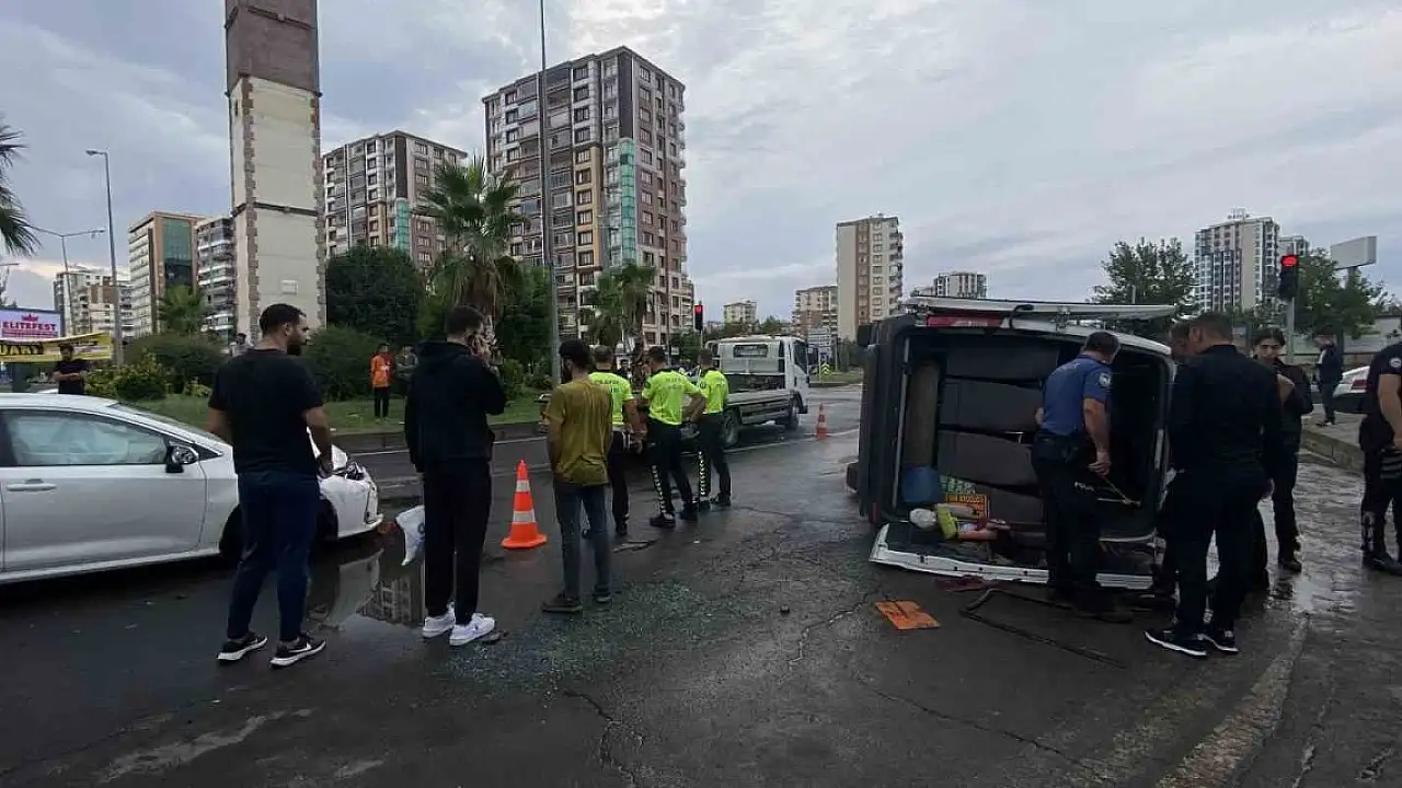 Merkez Kayapınar ilçesi Mahabat Bulvarı Tekel Kavşağı'nda B.Y. idaresindeki 33 K 0076 plakalı otomobil ile S.G. idaresindeki 21 M 0129 plakalı şehir içi minibüsü çarpıştı. Kazada, 1'i bebek 9 kişi yaralandı. İhbar üzerine kaza yerine polis ve sağlık ekibi sevk edildi.