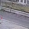 Öte yandan kaza anı, bölgedeki bir iş yerinin güvenlik kamerasınca görüntülendi.