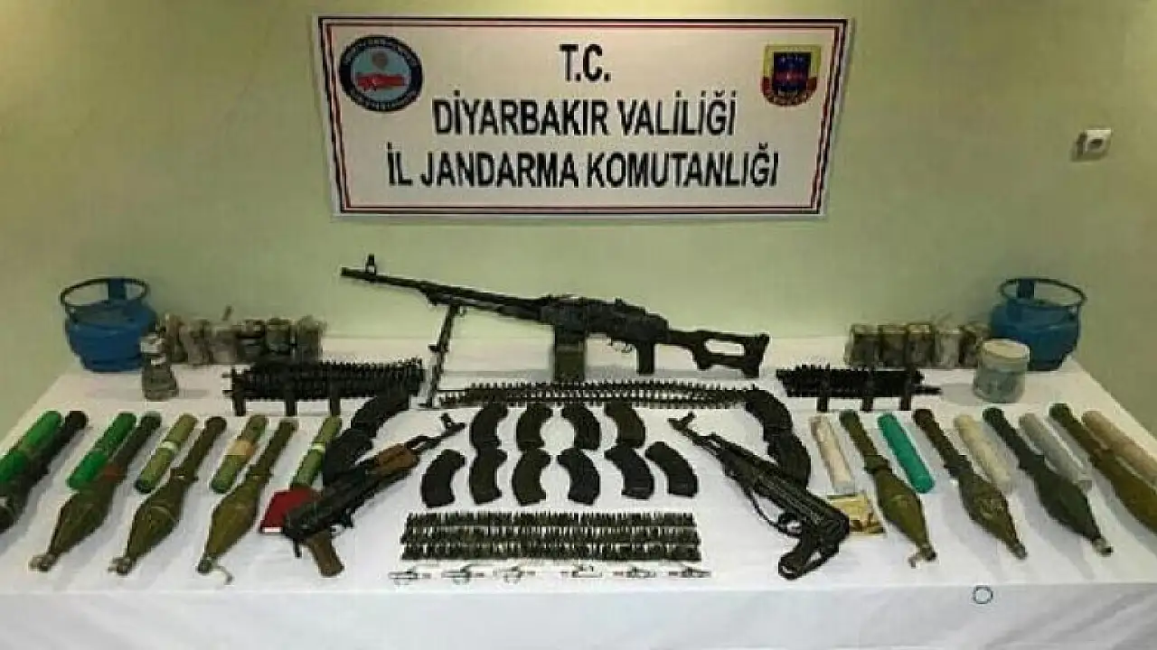 "Silvan İlçesi Demirkuyu Köyü ve Dağcılar Köyü Üçdirek Mezrası mülki sınırları içerisinde, 4 ayrı sığınak içerisine gizlenmiş ve toprağa gömülü vaziyette tespit edilen Jelikan bidonlar içerisinde; 2 adet AK-47 Kalaşnikof Piyade tüfeği, 1 adet Bixi makinalı tüfek, 19 adet AK-47 Kalaşnikof Piyade tüfeği şarjörü, 150 adet AK-47 Kalaşnikof Piyade tüfeği fişeği, 85 adet Bixi makinalı tüfek fişeği, 6 adet Doçka fişeği, 8 adet anti tank roketatar başlığı, 10 adet roketatar sevk fişeği, 6 adet fünye, 5 kilogramlık patlayıcı madde karışımı, 6 ayrı mayın/El yapımı patlayıcı düzeneği, 12 adet devre düzenekli pil bloğu, 15 adet Kitap, 4 adet boş not defteri, 7 adet 50 ve 100’lük Bixi mayonu, 605 metre elektrik kablosu, 200 metre tel kablo, 2 adet tüp, 1 adet aydınlatma mühimmatı, 21 çift spor ayakkabı, 1 adet portatif çadır ile çok miktarda giyim ve yaşam malzemesi ele geçirilmiş, Cumhuriyet Savcısının talimatı gereğince roketatar başlıkları, sevk fişekleri, fünye, mayın/el yapımı patlayıcı yapımında kullanılanlar ile yiyecek ve giyim maddeleri Patlayıcı Madde İmha Timi tarafından emniyetli bölgede imha edilmiş, silah ve mühimmat muhafaza altına alınmıştır."