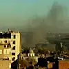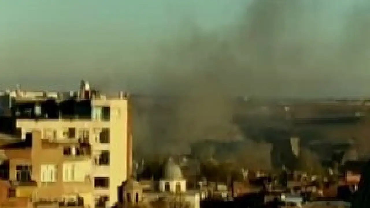 Diyarbakır'ın Sur ilçesinde teröristler ile güvenlik güçleri arasındaki çatışmada yangın çıkan tarihi Kurşunlu Camii'nden yükselen dumanlar ilçeyi kapladı. İlçede, çatışmalar sürüyor.