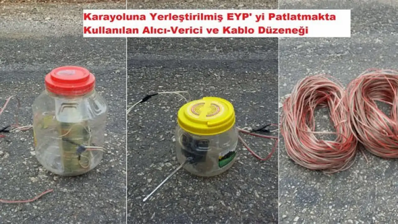 Diyarbakır İl Jandarma Komutanlığı'nca yapılan çalışmada, yol kenarına tuzaklanmış 2 adet jelikan bidon içerisinde, çivi ile güçlendirilmiş yaklaşık 100 kilogram amonyum nitratla yapılmış el yapımı patlayıcı bulunarak, kontrollü bir şekilde imha edildi.