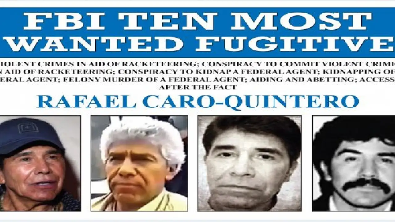Caro-Quintero, 1985 yılında ABD Uyuşturucu ile Mücadele İdaresi (DEA) güvenlik gücünün kartele yerleştiği gizli bir ajan olan Kiki Camarena'ya işkence edip öldürmekle suçlandı ve 40 yıl hapse mahkum oldu. 2013 yılında bir mahkeme, Quintero'nun cezasını kısaltarak serbest kalmasını sağladı. Karar daha sonra yüksek mahkeme tarafından bozuldu ancak Quintero kayıplara karıştı. O tarihten itibaren FBI'ın "En çok Arananlar" listesinde ilk 10'na giren Caro-Quintero için tarihteki en büyük ödüllerinden biri olan 20 milyon dolarlık ödül konuldu.