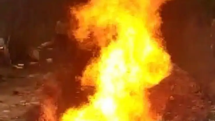 Kocaeli'de kazı çalışması esnasında patlayan doğal gaz boru hattı alev topuna döndü.