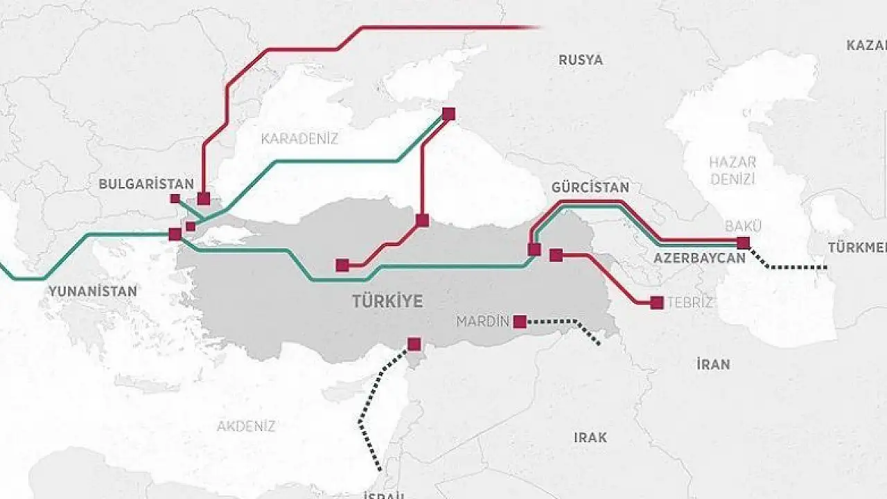 Türkiye 2007'de faaliyete giren Bakü-Tiflis-Erzurum Doğalgaz Boru Hattı üzerinden yıllık 6,6 milyar metreküp, Mavi Akım'dan 16 milyar metreküp ve Türkiye-Rusya Doğalgaz Boru Hattı'ndan da 14 milyar metreküp gaz ithal ediyor. İran üzerinden ise boru hattıyla Türkiye'ye yıllık yaklaşık 10 milyar metreküp gaz girişi sağlanıyor.