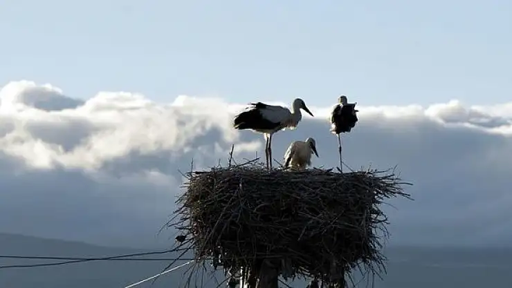 Ardahan'da yörenin biyoçeşitliliğine renk katan göçmen kuşlardan leylekler, köylülerin yaptığı yuvalar ve bıraktığı yemler sayesinde Ağzıpek köyünü mesken edindi.
