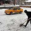 Vatandaşlar arabalarının üzerinde ve evlerinin önünde biriken karları temizledi.