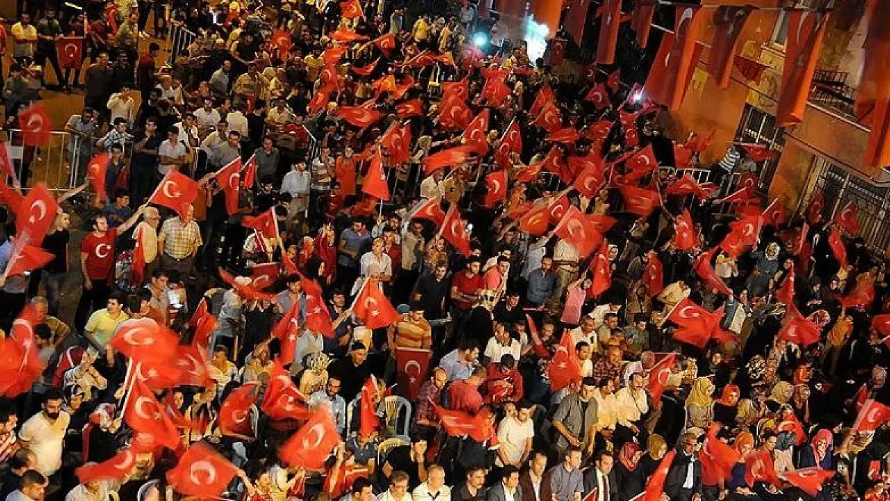 Bingöl'de yatsı namazının ardından Bingöl 15 Temmuz Diriliş Meydanı'nda toplanan vatandaşlar, ellerinde Türk bayraklarıyla demokrasi nöbeti tuttu.
