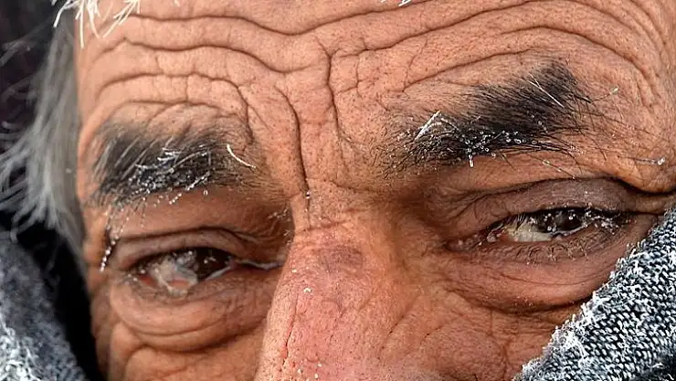 İnsanların kaş ve kirpikleri kırağı tuttu