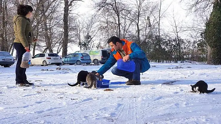 Edirne'de yaşayan Dilruba ve Muhammet Okumuş çifti, son bir yıldır özellikle kış aylarında mesailerinden arda kalan tüm zamanlarını kentteki sokak hayvanlarını besleyerek geçiriyor.