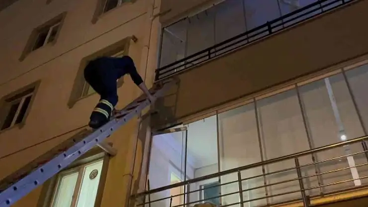 Komşular itfaiye ve ambulanstan yardım istedi. Olay yerine gelen itfaiye ekibi, 2.kata merdiven dayayarak balkondan içeri girdi. Ambulans da hazır bekletildi.